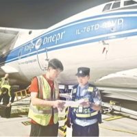 郑州边检站执勤民警认真检查货运航班相关资料