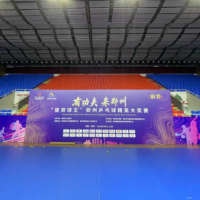 走进郑州市体育馆,已搭建完成的比赛区域映入眼帘。一张张崭新的乒乓球台按“中”字型整齐排列,球网也已调试至标准高度,从高处俯瞰,这一布局别具匠心,巧妙呼应了郑州作为 “天地之中” 的深厚文化底蕴。据了解,此次比赛共准备了8张专业乒乓球台,均符合国际赛事标准,台面弹性、摩擦系数等指标都经过严格检测。在体育展示的筹备搭建环节,为呈现完美的 “中” 字型布局,工作人员在测量间距、调整角度上颇费功夫,确保每个笔画比例协调,既符合赛事要求,又彰显文化内涵,让选手们在感受竞技氛围的同时,也能体会到郑州的城市魅力。除了乒乓球台,场地的灯光布置也十分讲究。灯光需有效避免反光,保证选手在比赛过程中不受光线干扰。为达到最佳照明效果,搭建团队对灯光的角度和高度反复调试,如今整个场地光照均匀,完全满足比赛需求。