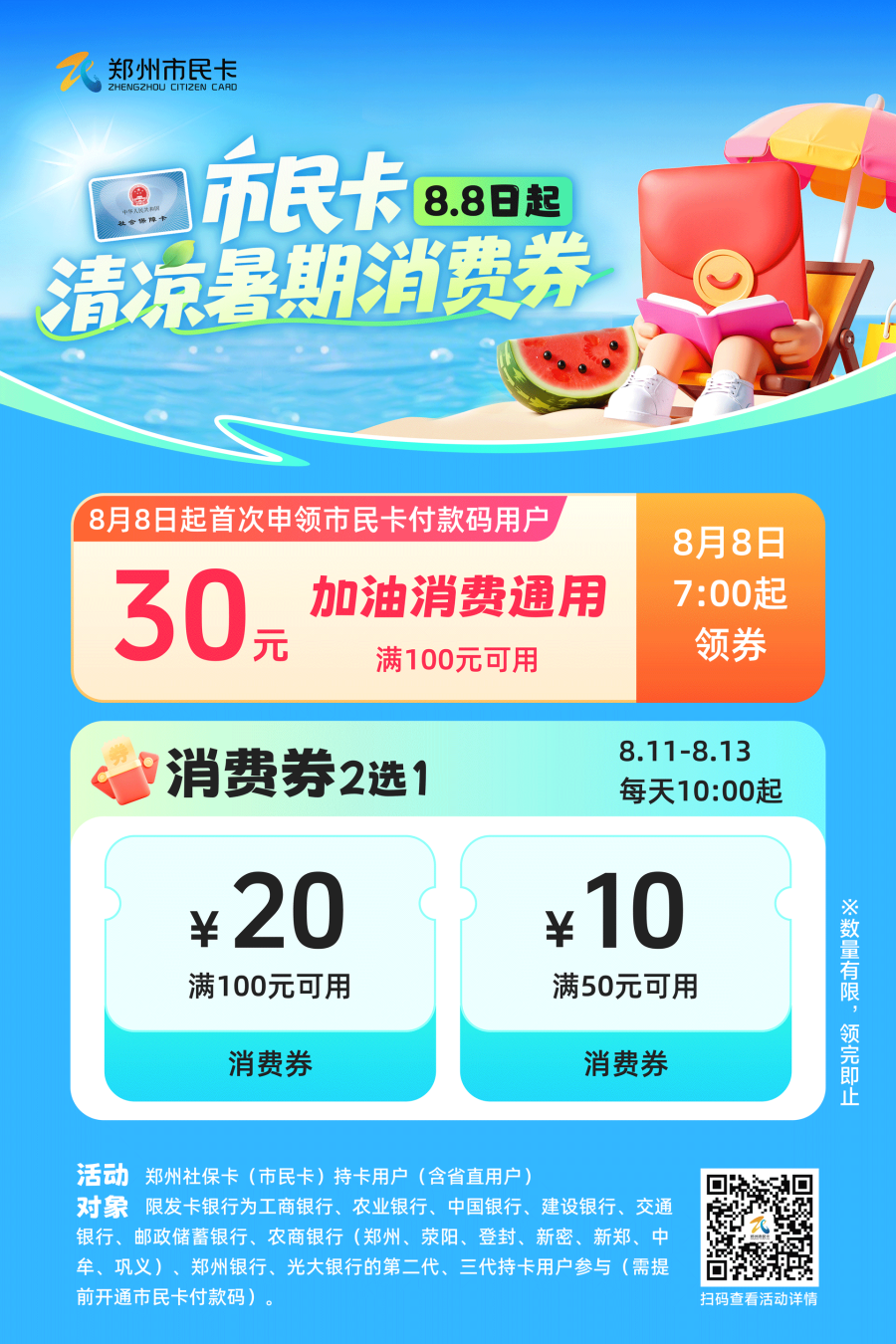 8月8日起发放!郑州社保卡(市民卡)暑期消费券来啦