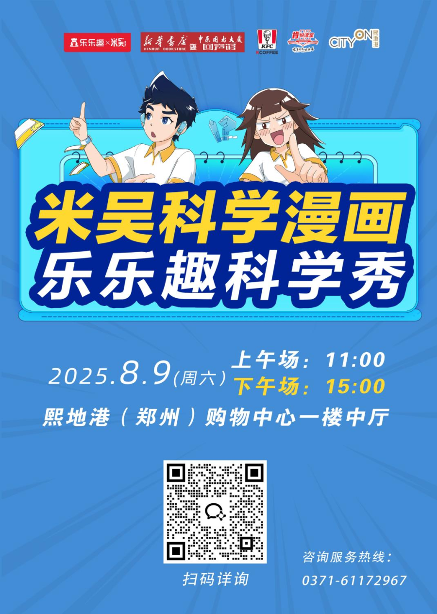 “为什么气球摩擦头发后会粘在墙上?”“彩虹是怎么形成的?”“如何用柠檬发电?”一场别开生面的科学盛宴——“米吴科学漫画乐乐趣科学秀”主题活动即将于8月9日在熙地港(郑州)购物中心开启。畅销科普读物《米吴科学漫画》创作团队将亲临现场,通过“漫画讲解+现场实验”的形式,带领孩子们探索科学的奥秘。