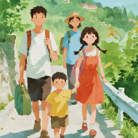 稍作休整,全家便沿着登山古道往上挪。路边的野花蹭着裤腿,雾气时不时从树缝里钻出来,打湿了石阶。头顶的枝叶织成绿伞,风一吹,叶子“沙沙”地唱,虫儿在草丛里“唧唧”地叫,浑身的汗一下子就干了。