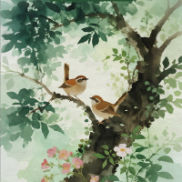 真正要识得虫鸟之声的妙处,须得心先静下来。心若不静,便纵有千百只黄莺在耳边啼转,人也只当是聒噪。待得心闲意适,即便是三两声稀疏的雀噪,亦能听出几分天籁的意味来。古人深谙此理,笔下那些动人的鸟鸣,多半是衬在“静”字里的。王维的《鸟鸣涧》便是个中翘楚:“人闲桂花落,夜静春山空。月出惊山鸟,时鸣春涧中。”这诗里的声响,是极精微的。人心闲淡,方能察觉桂花坠地的轻触;春山空寂,才容得下月轮初升的步履。而那一声山鸟的惊鸣,恰似一滴墨点入清水,倏忽漾开,反将这无边的静夜晕染得愈发深邃、愈发空灵了。王维之外,亦有他人懂得这寂静中的喧哗。南朝王籍《入若耶溪》中的“蝉噪林逾静,鸟鸣山更幽”,直白道破了这层玄机。蝉声越是喧聒,愈显得树林幽深;飞鸟偶尔一啼,反而像给山峦套上了消音器。幼时,我的乡邻总嫌夏夜蛙鼓扰眠,而今,久居城市水泥森林之人却视若仙乐,这道理,大抵是相通的。