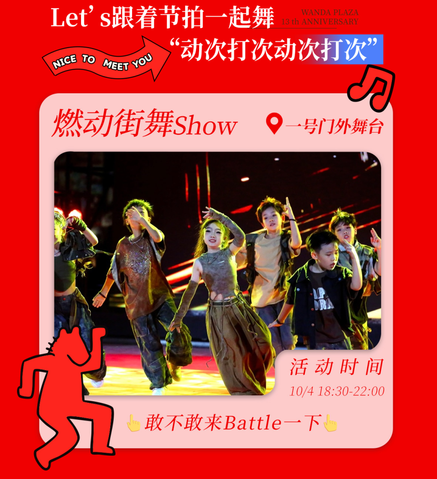 郑州二七万达广场精彩赛事:10月1日-8日,迎来“小小英雄少儿拳击挑战赛”,现场设置专业擂台,超200场精彩对决;“少儿街舞大赛”汇聚200余组参赛选手、Breaking等多种舞种激情开赛;广场上特别设置了“掘金派队”主题探索区域,还有餐饮、服饰、特惠观影等优惠。
