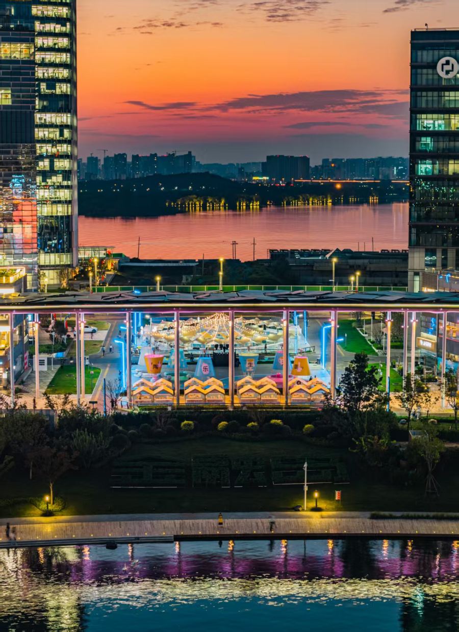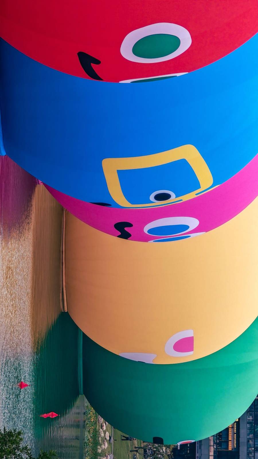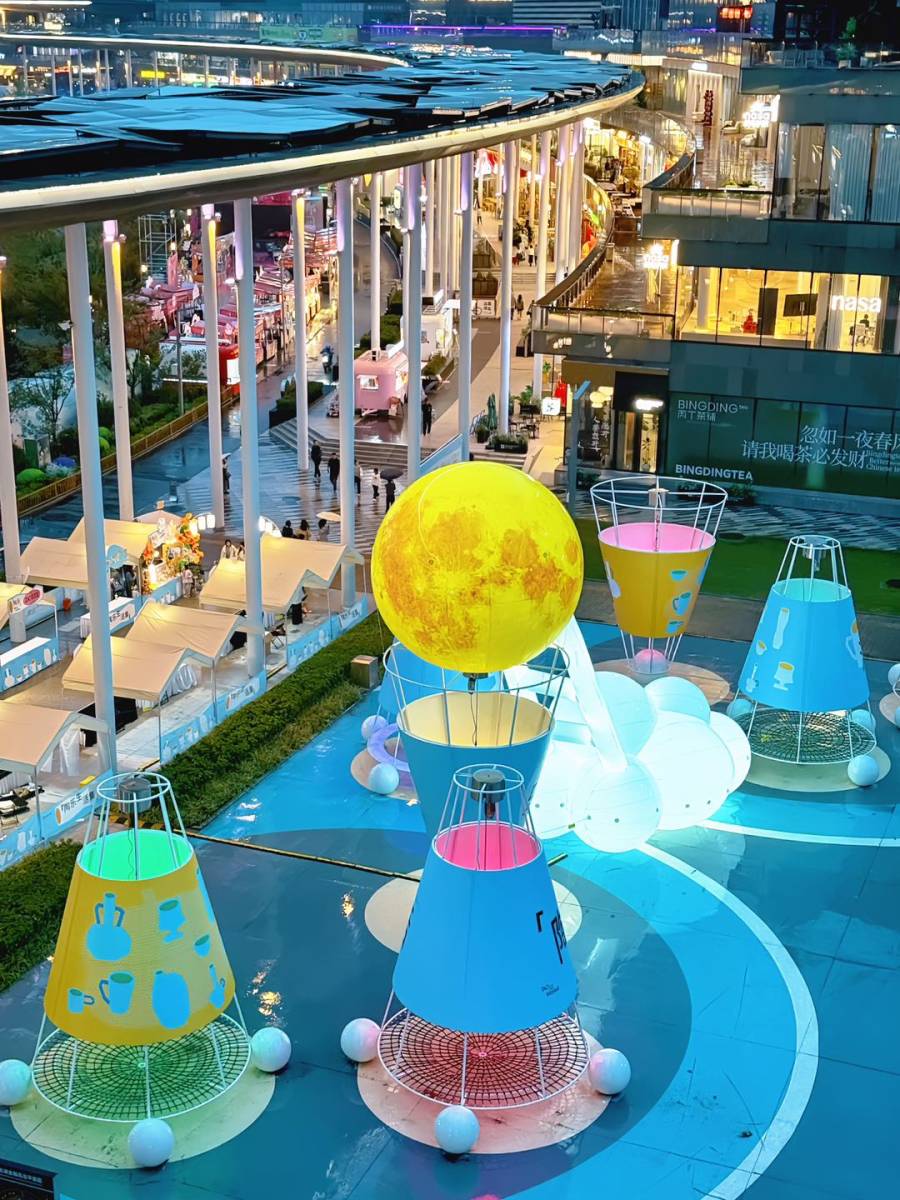 与此同时,五月天乐团25周年巡回演唱会的标志性艺术装置——“五球”,也首次亮相龙湖金融岛。由蓝、红、黄、绿、橙五色巨型球体组成的“五球”,象征着成年世界中依然保有的童心与幽默。此次落地,不仅为即将到来的五月天郑州演唱会预热,更成为岛上又一吸睛亮点。夜幕降临,“五球”灯光点亮,倒映湖中,与晚霞交相辉映,吸引全国歌迷前来拍照留念。在湖边迎着落日,与“五球”同框,成为这个假期里一份难得的惬意与浪漫。