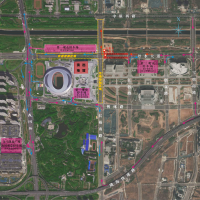 设在西四环西侧金马凯旋广场,在上述停车场饱和后启用。车辆沿西四环进入和驶出。