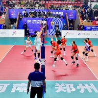 2025年河南省女子排球城市联赛第二阶段的比赛,10月10日晚在郑州、商丘、周口、开封四地同时开赛。场外双方啦啦队极富当地特色的歌舞表演、场内双方队员精彩激烈的对抗、看台上观众不遗余力地呐喊助威,联袂制造出新一波排球热潮。当晚主场作战的郑州队,以3∶0战胜洛阳队,拿下这场强强对话。