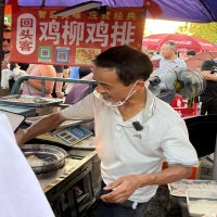 “我是来紧急支援的,之前在苏州也摆过摊。我们都是一家人,要热情服务好每位顾客。”鸡排侄儿一边熟练的炸鸡排,一边回应着顾客。