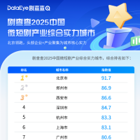 【郑州以86.9综合得分,位列微短剧产业综合实力城市第二名】