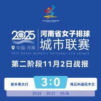 11月2日,2025年河南省女子排球城市联赛第二阶段八强赛第八轮比赛开打,实力超群的郑州队继续强势发挥,做客洛阳以3∶0干脆利索轻取洛阳队,这样郑州女排以八战八胜不失一局的巨大优势领跑。三局比分分别是25∶10、25∶16和25∶21。其他比赛中,开封龙亭队客场以3∶0击败平顶山队,航空港区队在省职工文体中心主场以3∶0击败周口队,新乡南太行以3∶0击败商丘队。