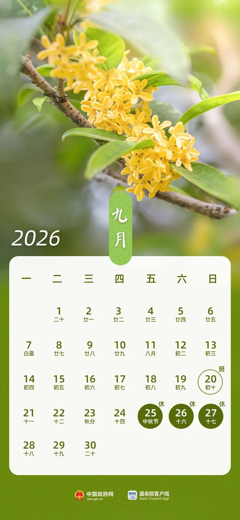 11月4日,国务院办公厅关于2026年部分节假日安排的通知发布。根据通知,元旦将在1月1日至3日放假调休,共3天;春节将在2月15日至23日放假调休,共9天;劳动节将在5月1日至5日放假调休,共5天。