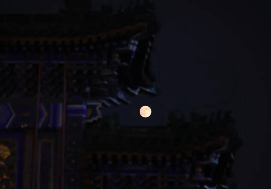 11月5日在黑龙江省齐齐哈尔市拍摄的“超级月亮”。新华社发(王勇刚摄)