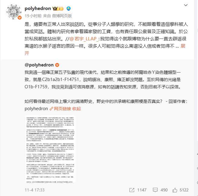 文章中他提到,分子人类学作为研究,采样过程十分严谨,需要当面抽血,涉及重要家族,不仅需要看身份证,还需要问家谱;若涉及爱新觉罗这种重要家庭,还需要请教清史专家,不会是谁自称“爱新觉罗”就直接相信,因此在源头上就保证爱新觉罗姓的“分母不过滥”。