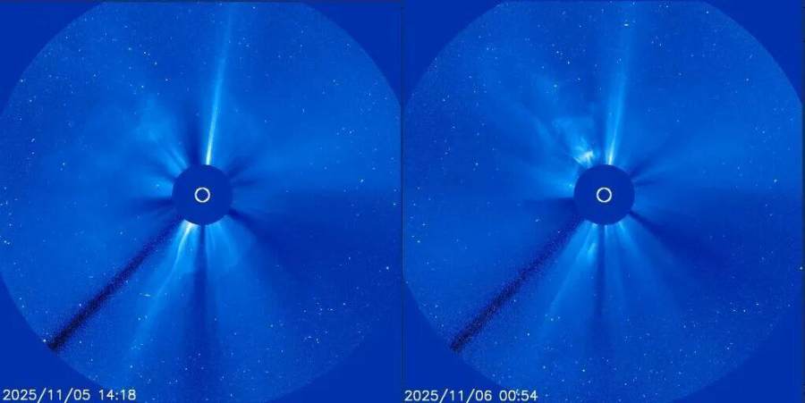 北京时间11月5日晚间19时19分以及11月6日的清晨06时07分,太阳再次出现耀斑两连暴,最大强度分别为M7.4和M8.6级,并伴随较为明显的日冕物质抛射(CME)。