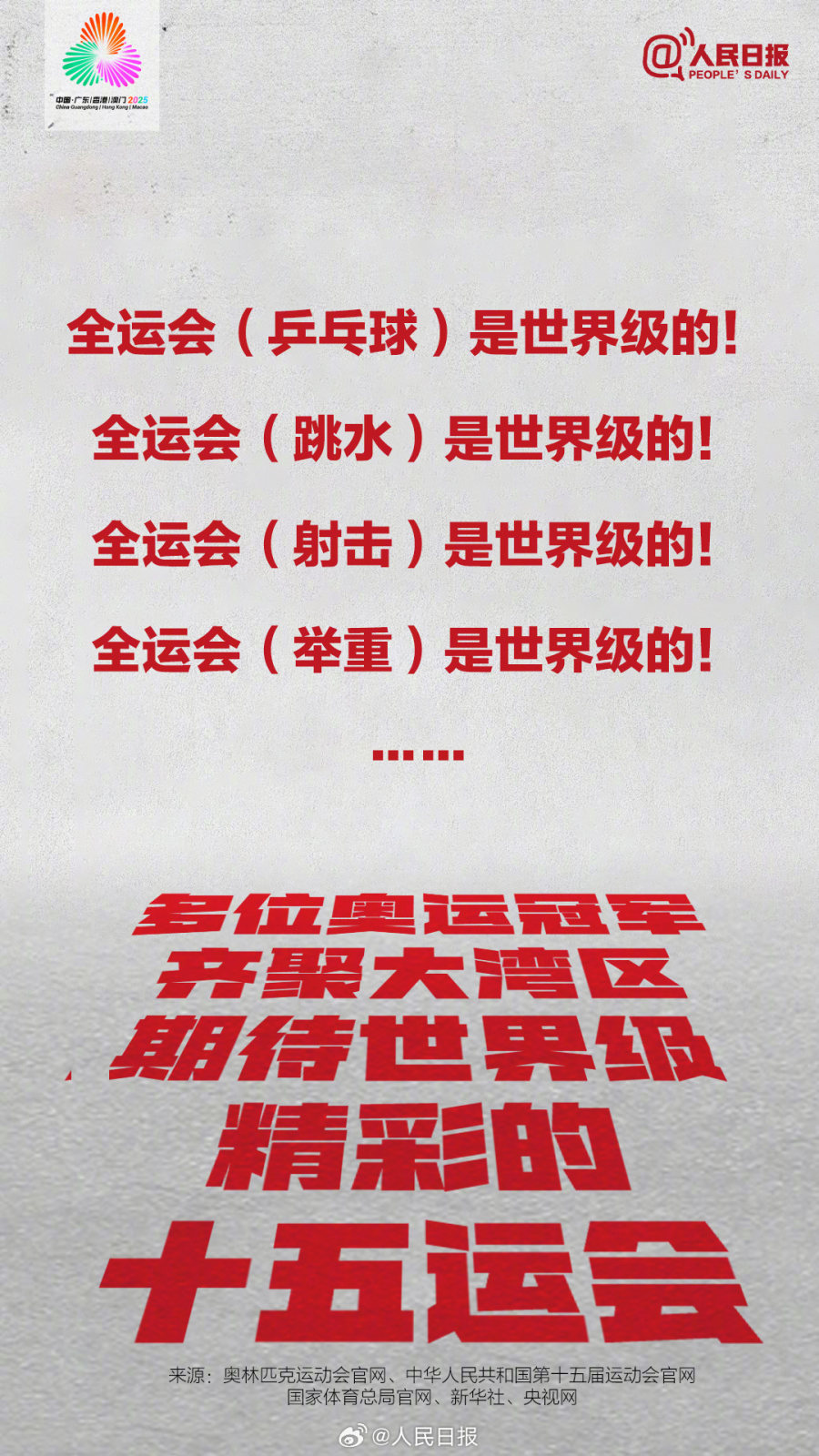 全运会(乒乓球)是世界级的,全运会(跳水)是世界级的,全运会(射击)是世界级的,全运会(举重)是世界级的……多位奥运冠军齐聚大湾区,一起期待“世界级”精彩的十五运会!