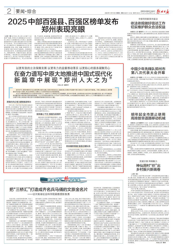在这片承载着厚重历史与光荣使命的热土上,郑州市人大常委会牢记领袖嘱托,紧扣时代脉搏,以高度的政治自觉和扎实的履职实践,奋力书写着服务高质量发展与高效能治理的崭新篇章。从立法护航到监督问效,从代表下沉到民声落地,从科技赋能到自身建设,郑州人大工作展现蓬勃生机与无限活力,为谱写中原大地推进中国式现代化新篇章贡献着坚实的法治力量。