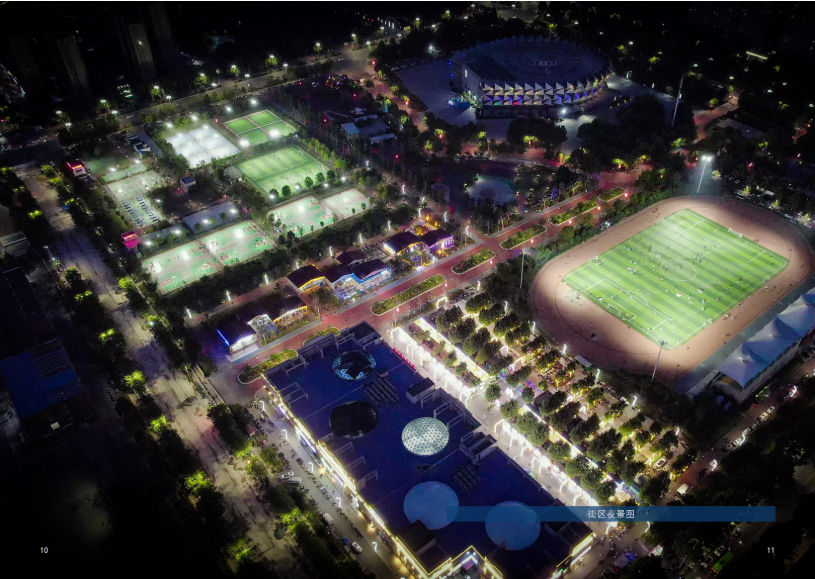 街区运动生态圈以匹克球为核心,配套篮球场、足球场、健身馆等设施,举办全国匹克球锦标赛、省级联赛等高端赛事,构建“以赛促游”的体育旅游模式;潮玩集聚地引入元宇宙VR影院、酷萌电玩、主题酒吧等创意业态,融合科技互动与潮流消费;文化体验带常态化策划非遗市集、诗经文化展演、轮滑荧光秀、汉服走秀等主题活动,赋予街区持续活力。夜经济板块以“光影科技+沉浸式体验”为特色,开发夜景游览、夜间演艺、特色夜市等产品,实现“日间运动、傍晚休闲、夜间社交”的全时段运营。