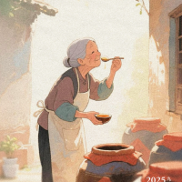 外婆倒是很沉得住气,任那声响与香气日渐喧嚣,她只每日掀布看一眼,便覆上。直到某一日,她唤我来,递过一只长柄竹勺:“尝尝看。”