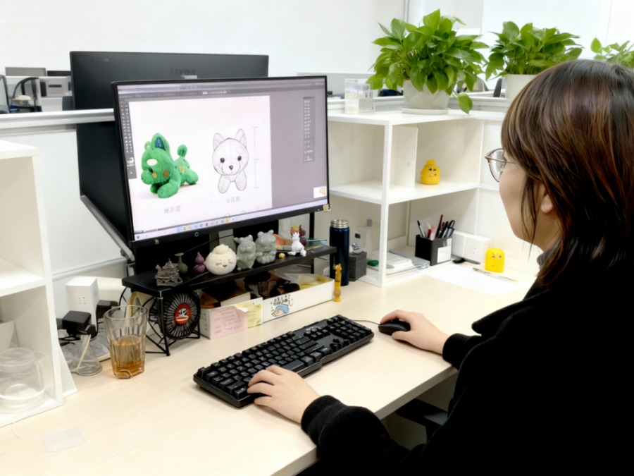 设计团队工作人员在修改设计图。