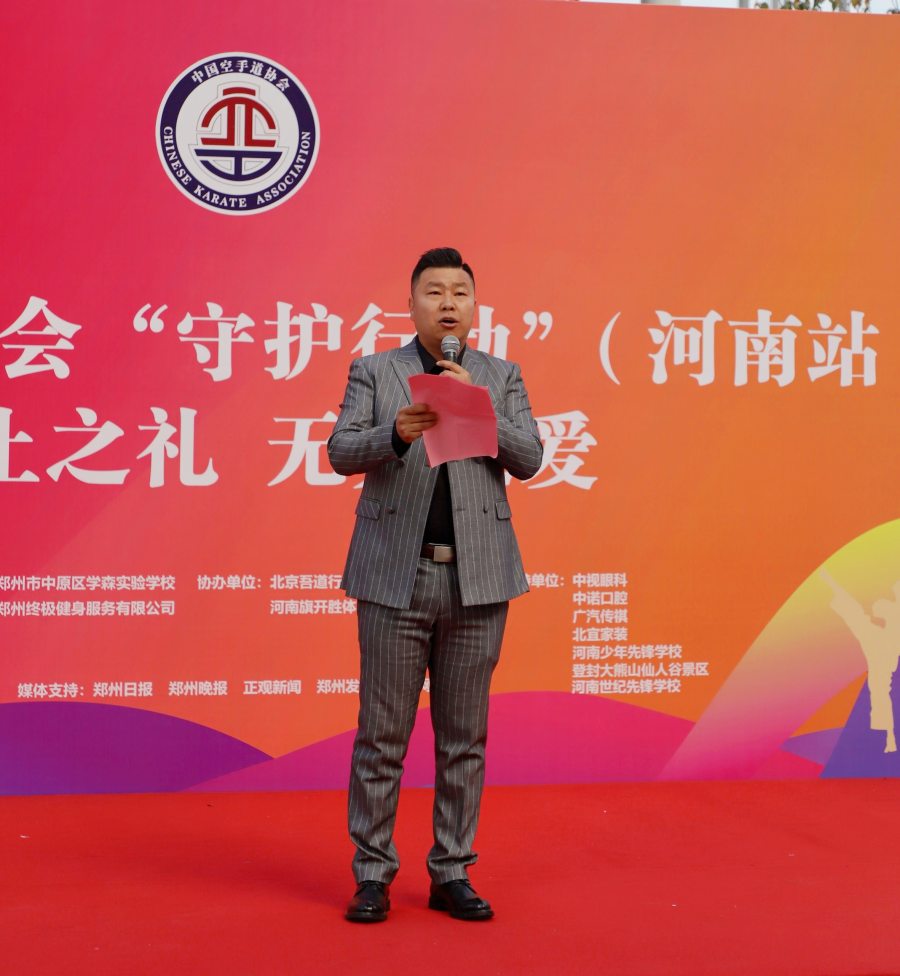 作为活动承办方之一,郑州市中原区学森实验学校始终以“以体育人、公益惠民”为己任,该校艺体处主任赵巨在活动伊始,深情诠释了“守护行动”的初心:“学森实验学校深耕空手道教育多年,不仅投入巨资建成专业训练馆与力量训练房,更培养出亚洲青少年锦标赛冠军史恩熙、国家一级运动员杨一凡等一批优秀学子,在省市级乃至全国赛事中斩获诸多荣誉。我们始终坚信,空手道不仅是强身健体的运动,更是锤炼品格的载体——‘尊重、坚持、勇敢’的武道品质,能成为每个孩子成长路上的坚实铠甲。‘守护行动’从校内走向校外,就是要打破教育边界,让更多家庭免费接触空手道文化、收获实用技能,让公益之光覆盖更广泛的群体,这也是我们践行教育责任、传递无界之爱的核心意义。”