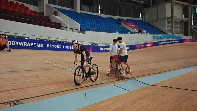 现代竞技体育中,仅靠拼蛮力、凭经验已难以为继。河南省场地自行车队在十五运会上创造的辉煌离不开科学系统的训练体系与创新的培养模式。上一届全运会周期,国际顶尖外教肖恩·萨顿的加盟助队伍斩获4金;本届周期,队伍再将其兄盖瑞·萨顿招致麾下。这位曾带领美国队在两届奥运会斩获4枚场地自行车金牌的名帅,带来了全球前沿的训练体系,以及针对不同运动员的心理把控与训练节奏调控方法。