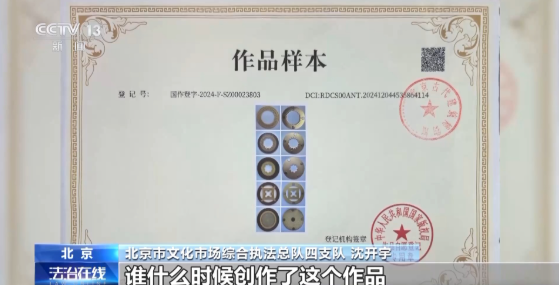 北京市文化市场综合执法总队四支队 沈开宇:这是一个美术作品,谁拥有美术作品的著作权,我们要看到底是谁创作了,谁什么时候创作了这个作品。创作冰箱贴的过程当中,他肯定有初版、定稿版,工厂生产的时候还有相应的委托合同,这些材料都证明了创作过程。但是我们再去调查被投诉单位,让他们提供相关的证明材料,证明他们创作了这个作品的时候,他们是提供不出来相关的资料的。