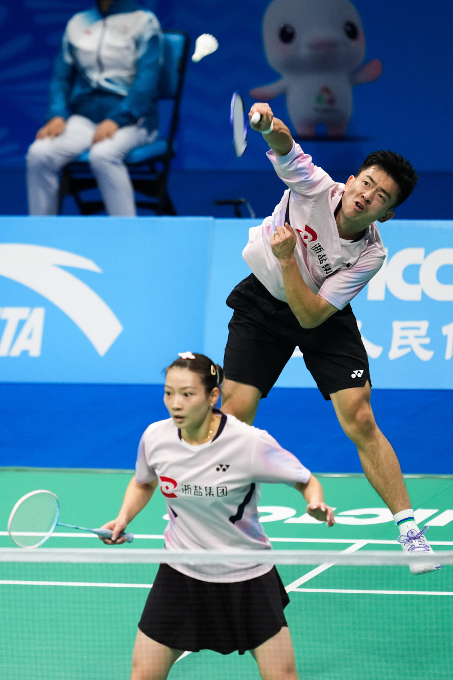 11月20日,浙江队组合郑思维(上)/黄雅琼在比赛中。 新华社图