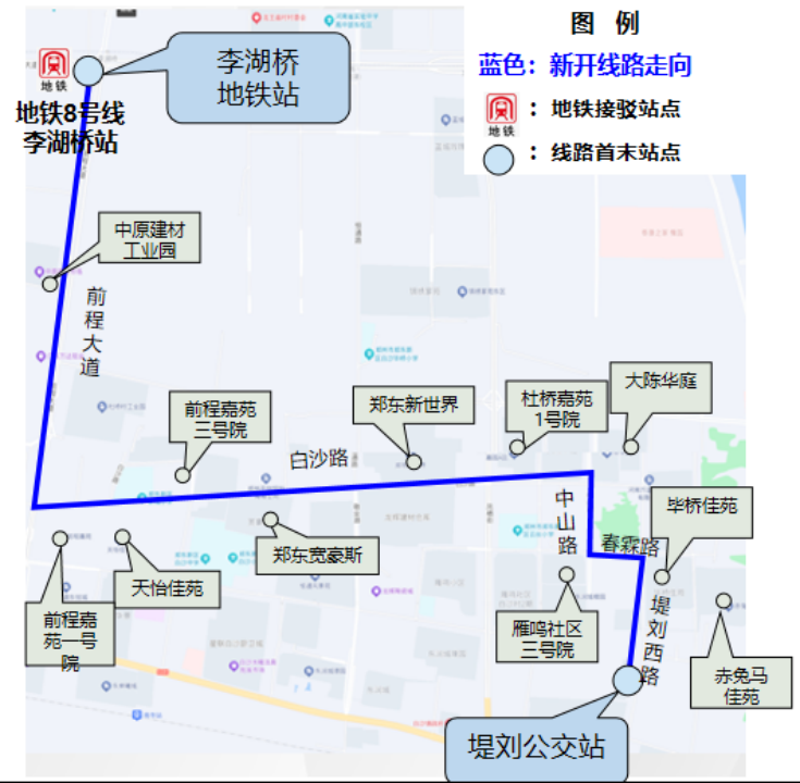 线路撤销后沿途乘客可在圃田站乘坐地铁8号线出行。