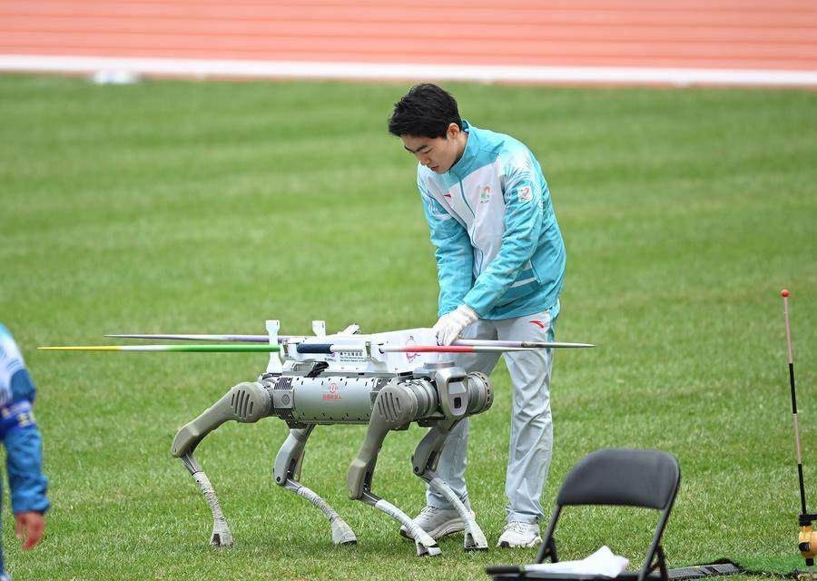 开赛以来,在广东奥林匹克体育中心举行的标枪、铁饼等长投项目中,奔忙的机器狗与奋力拼搏的运动员一同构成赛场亮丽风景线。运动员奋力一掷,机器狗蓄势待发、迅速奔向器材落点,装载完毕后再返回投掷区。
