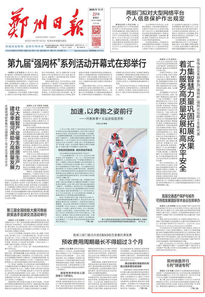 记者昨日从国铁集团郑州局获悉,为服务广大球迷旅客观看2025年足协杯决赛,国铁集团郑州局统筹调配运力,开行6列“球迷专列”,相关车次车票11月22日起售,为球迷旅客观赛提供出行便利。