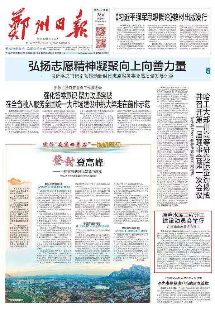 11月28日,《郑州日报》头版报道,庙湾水库工程于11月27日正式开工,水库位于郑州西北部的贾鲁河支流索河河道之上,见下图↓