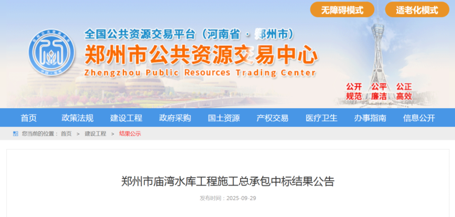 水库承建方也很厉害。正观新闻进一步了解到,郑州市公共资源交易中心9月29日曾发布《郑州市庙湾水库工程施工总承包中标结果公告》。中标结果显示,该工程中标人为中国水利水电第十一工程局有限公司,工期24个月。据悉,中国水利水电第十一工程局有限公司隶属于中国电建,成立于1955年,是新中国建立后经国务院批准组建的第一支机械化水电施工队伍。其先后承建了黄河三门峡、洛河故县水利枢纽等大型水利水电工程,参与建设了黄河小浪底、长江三峡等上百个大型水利水电、工民建和路桥工程。