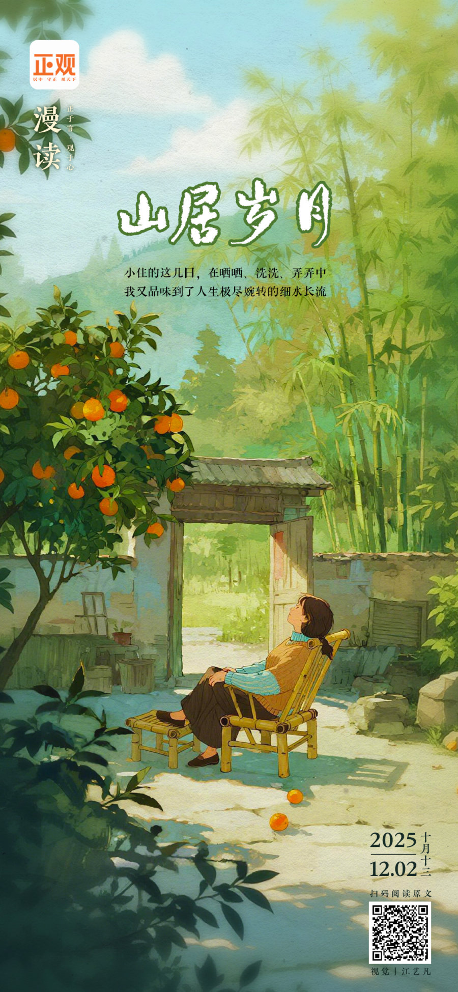 小住的这几日,在晒晒、洗洗、弄弄中,我又品味到了人生极尽婉转的细水长流。眼观山色,耳听风吟,鼻嗅肴香,舌尝野味,身沐暖阳,意随云游——色声香味触法皆入心怀,倒似一场心无挂碍的洗涤,寻得了久违的观自在。