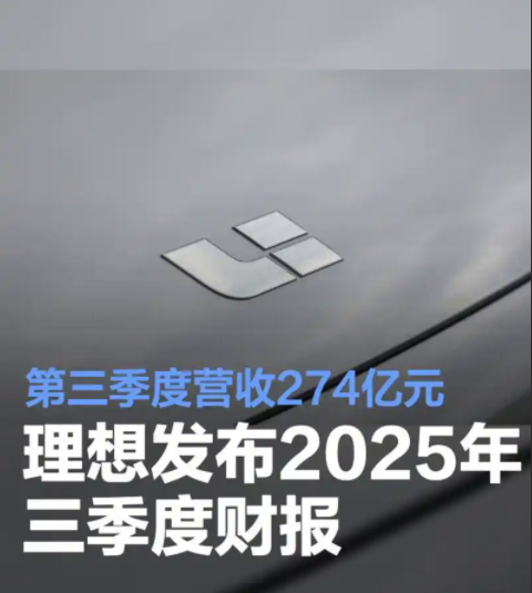 2025年11月26日,理想汽车三季度财报正式发布。三季度营收274亿元,前三季度营收达835亿元,持续领跑新势力车企。三季度,理想汽车交出了其“双能源布局+AI战略+全球化”三维体系的实力答卷。