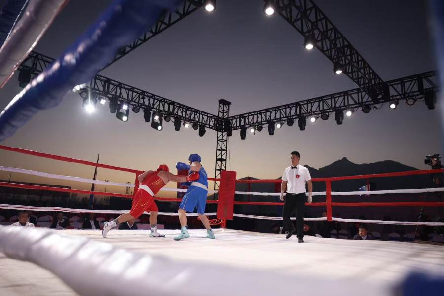 本次比赛的场地从惯常的室内转移到了室外,设在经常上演万人团体操的塔沟武校五环演武场。高水平比赛落地在校内,也大大激发了学生们的热情,每场比赛都吸引了数千名观众到场为双方选手加油助威。尽管初冬的夜晚寒意十足,给选手们带来了一定的困难,但在巍峨嵩山的脚下,绚丽的灯光、精彩的武术表演和观众的热情共同营造出的热烈氛围,则给他们带来了独特的体验,也让每个人都格外兴奋,场上精彩场面不时出现。