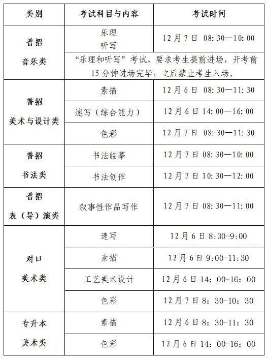 1.开考前40分钟(首场考试开考前50分钟)考生开始入场。考生入场后不得离开考场,直至本场考试结束。开考15分钟后,迟到考生不得进入考点。音乐类考生尤其要注意:音乐笔试7:40开始入场;8:15后,迟到考生不得进入考场。