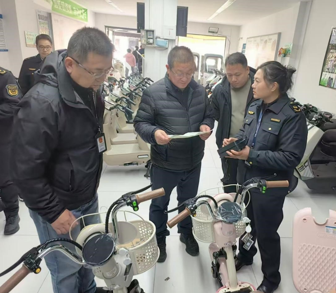 今年12月1日起,按照《电动自行车安全技术规范》(GB17761-2024)要求,不符合新国标的电动自行车全面禁售。为确保新规落地见效,严厉打击违法违规经营行为,切实保障群众出行安全,近日,市市场监管相关负责人带队,对我市电动自行车批发市场和集中销售区域进行专项督导检查。