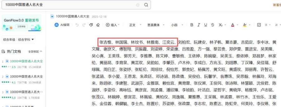 记者搜索发现,在“竹溪县住房和城乡建设局本级机械设备租赁采购中标(成交)结果公告”中,评审小组成员为张吉惟,林国瑞,林玟书,林雅南,江奕云。记者在百度搜索“10000中国普通人名大全”,发现位于该文档中前5个人名,确为张吉惟,林国瑞,林玟书,林雅南,江奕云。