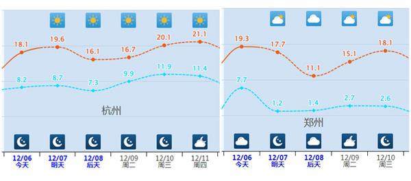 12月7日,南方将迎来本次升温过程的气温高点,最高气温20℃线将在长江中下游一带。上海、杭州最高气温20℃,较常年同期明显偏高。