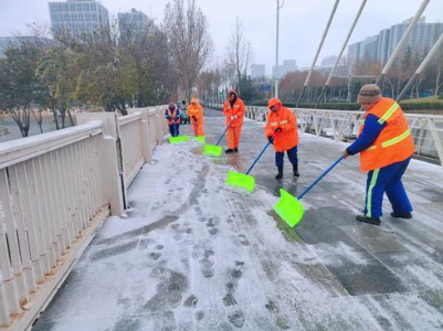 为应对今冬第一场降雪,12月12日,全市城管系统共出动巡查和清除冰雪作业人员2.7万余人次,出动清除冰雪机械设备、车辆等1300余台次,撒布融雪剂1630余吨。