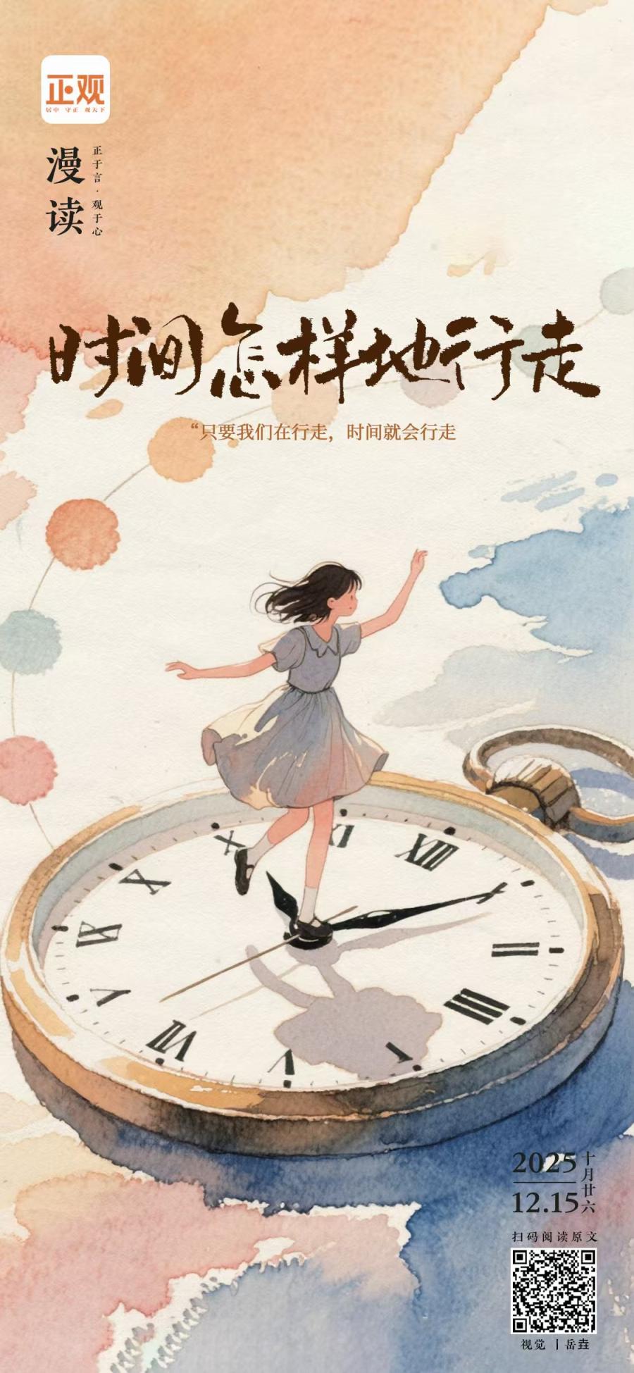 我终于明白挂钟上的时间和手表里的时间只是时间的一个表象而已,它存在于更丰富的日常生活中。只要我们在行走,时间就会行走。我们和时间如同一对伴侣,相依相偎着,不朽的它会在我们不知不觉间,引领着我们一直走到地老天荒。