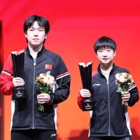2025年5月举行的多哈世乒赛里,王楚钦4比1战胜雨果夺得男单冠军,孙颖莎4比3战胜王曼昱夺得女单冠军。