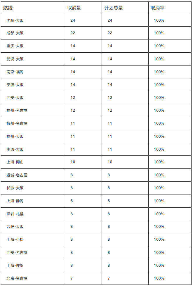 未来两周46条中日航线“零航班”