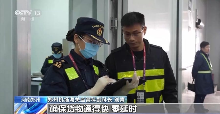 郑州机场海关监管科副科长 刘青:我们实施“7×24”小时预约查验、加急检测,同时指导企业采用提前申报、附条件提离等便利化通关措施,确保货物通得快、零延时。
