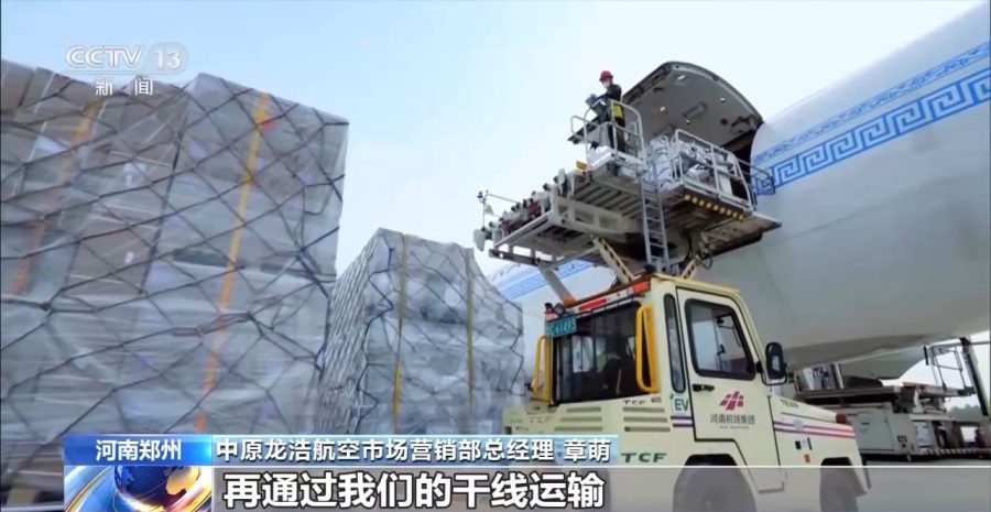 中外运空运有限公司郑州分公司副总经理 龙啸:依托卢森堡货航丰富的运力资源,我们开通了郑州到欧洲主要市场的定班货运包机。来自全国各地,尤其是来自“长三角”“珠三角”的货物,来了就能走,在时效上提供了强有力的支撑。