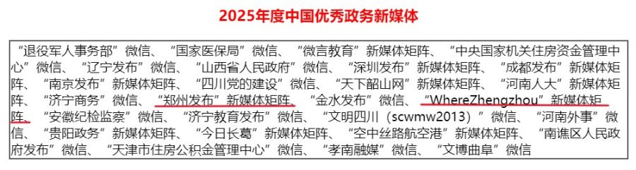 喜报! “郑州发布”“Where Zhengzhou”新媒体矩阵上榜“2025年度中国优秀政务新媒体”