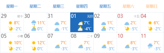 图1 元旦假期天气预测示意图
