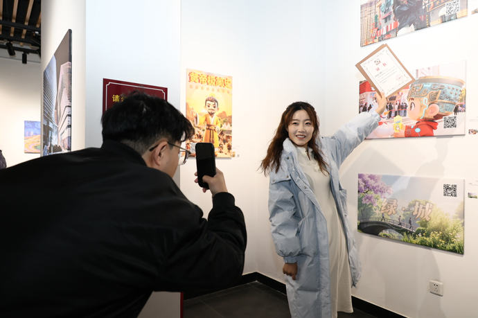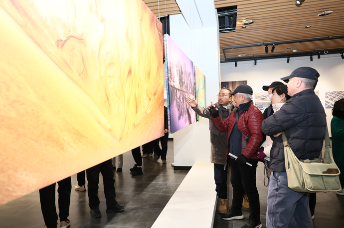 一幅幅作品前,观众们驻足凝视:黄河的波澜壮阔、少林功夫的刚柔并济、市井小巷的温暖烟火,都引发了阵阵赞叹。大家纷纷拿出手机拍照打卡,记录这场视觉盛宴。