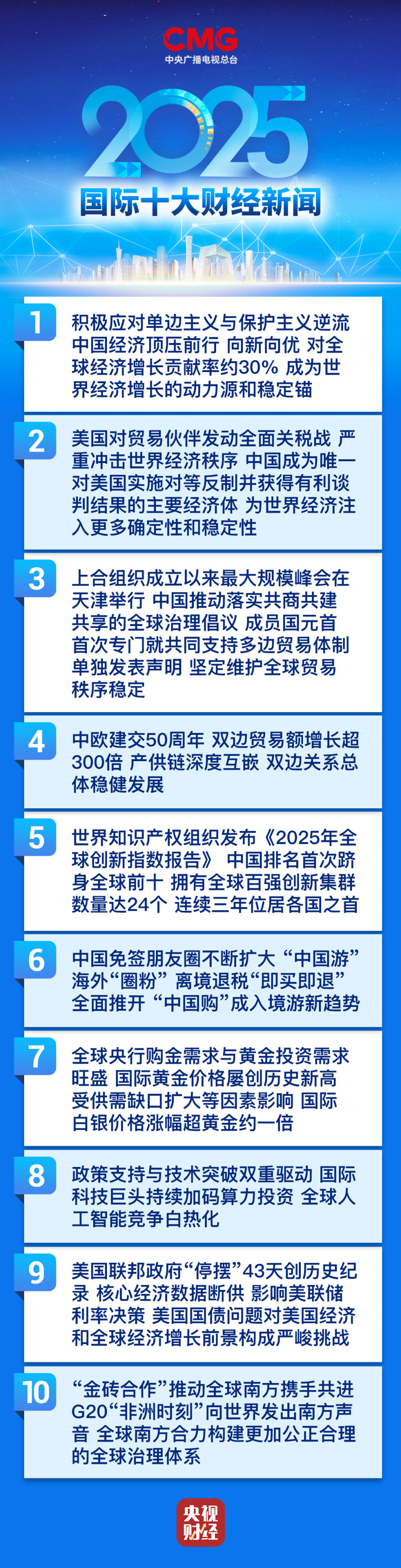 中央广播电视总台发布2025国内、国际十大财经新闻