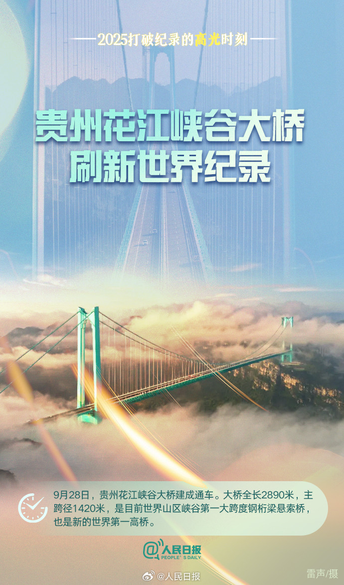 贵州花江峡谷大桥刷新世界纪录、“领航号”盾构机掘进突破万米大关、中国影史动画电影票房创纪录、张展硕于子迪等体育小将全运会屡破纪录……2025年这些突破振奋人心,骄傲回顾!