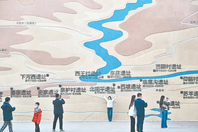 如今,伴随着大河村遗址博物馆新馆与大河村国家考古遗址公园的接连开放,遥远的仰韶文化正在变得更加真实可感。从展厅“仰韶印象”的原始森林走来,实景打造的大河村生产生活场景,仿佛让观众身临其境;向广袤遗址公园的原野中走去,亲手制陶、渔猎体验、鹿苑喂养让市民游客流连忘返。
